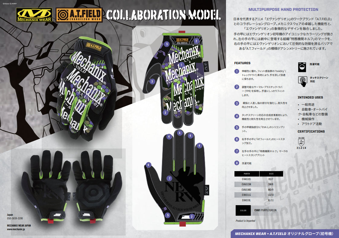 Mechanicswear is a brand I have absolute confidence in when it comes to gloves. These gloves were created in a special collaboration between Mechanicswear and ATFIELD, the work brand of Japan's leading anime, Evangelion.
