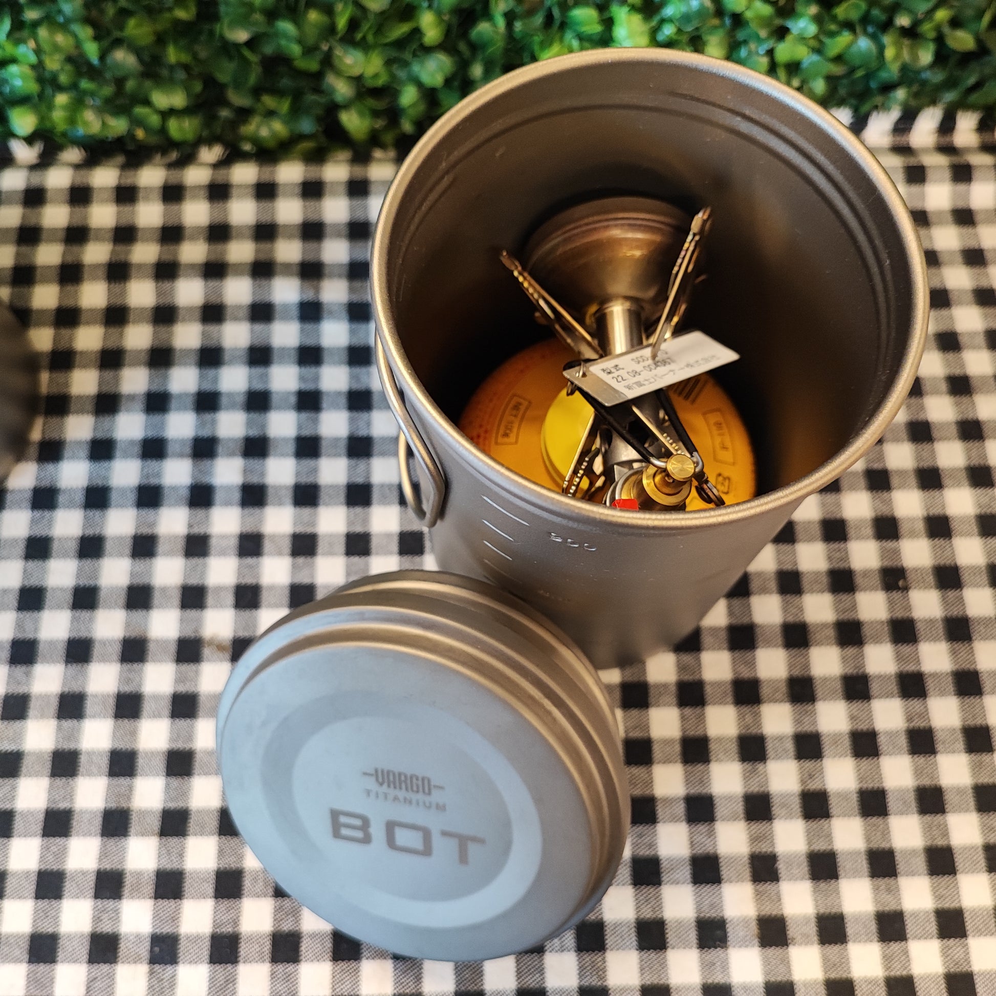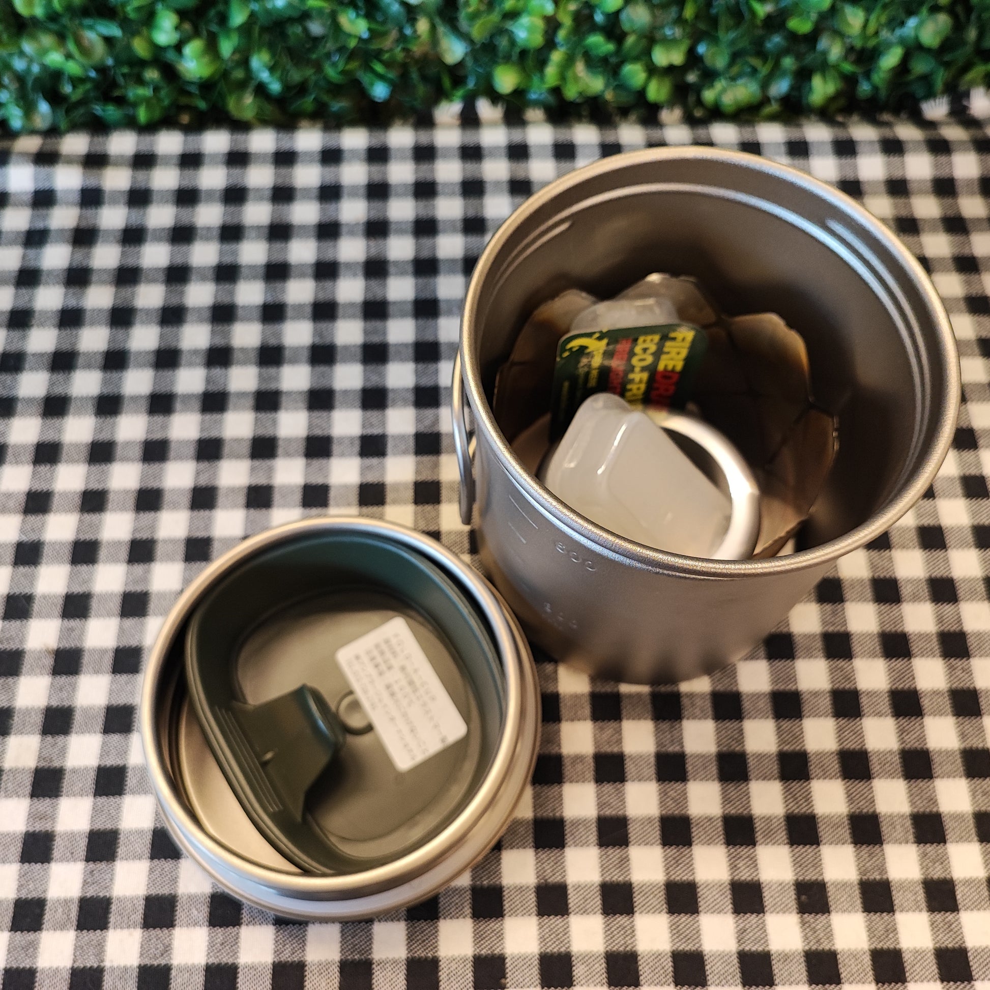 この700mlモデルも、スタッキングを工夫すれば110缶とバーナーヘッドを収納できますが、このモデルはやはりアルストや固形燃料がベストかなと思います