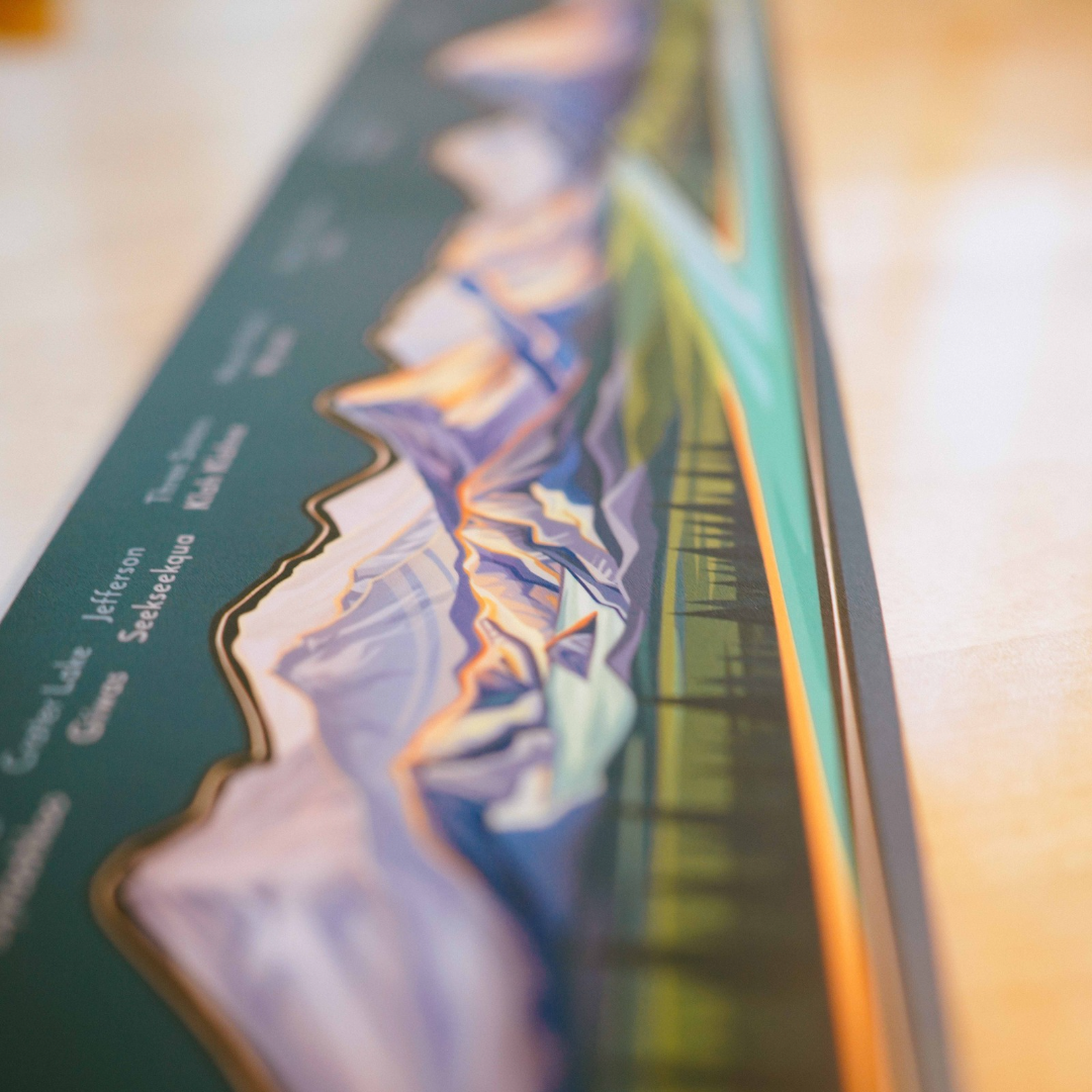 カスケード火山群のインフィニティ・ステッカーです!シャスタ山、クレーターレイク山、ジェファーソン山、バチェラー山、スリーシスターズ山、フッド山、セントヘレンズ山、アダムス山、レーニア山、グレーシャーピーク、ベーカー山など、カナダ、ワシントン州、オレゴン州、カリフォルニア州を代表する山々が描かれています!