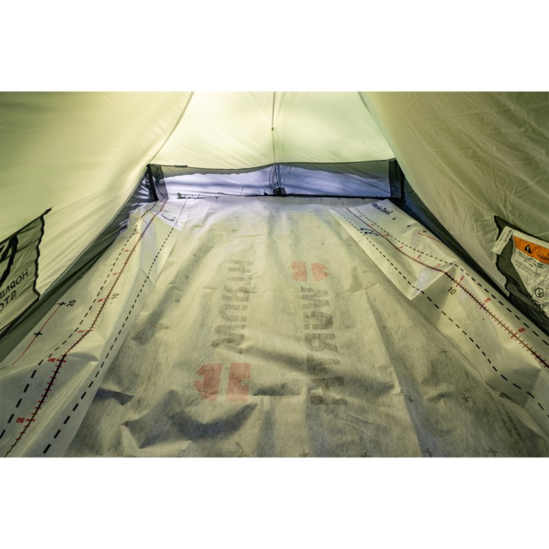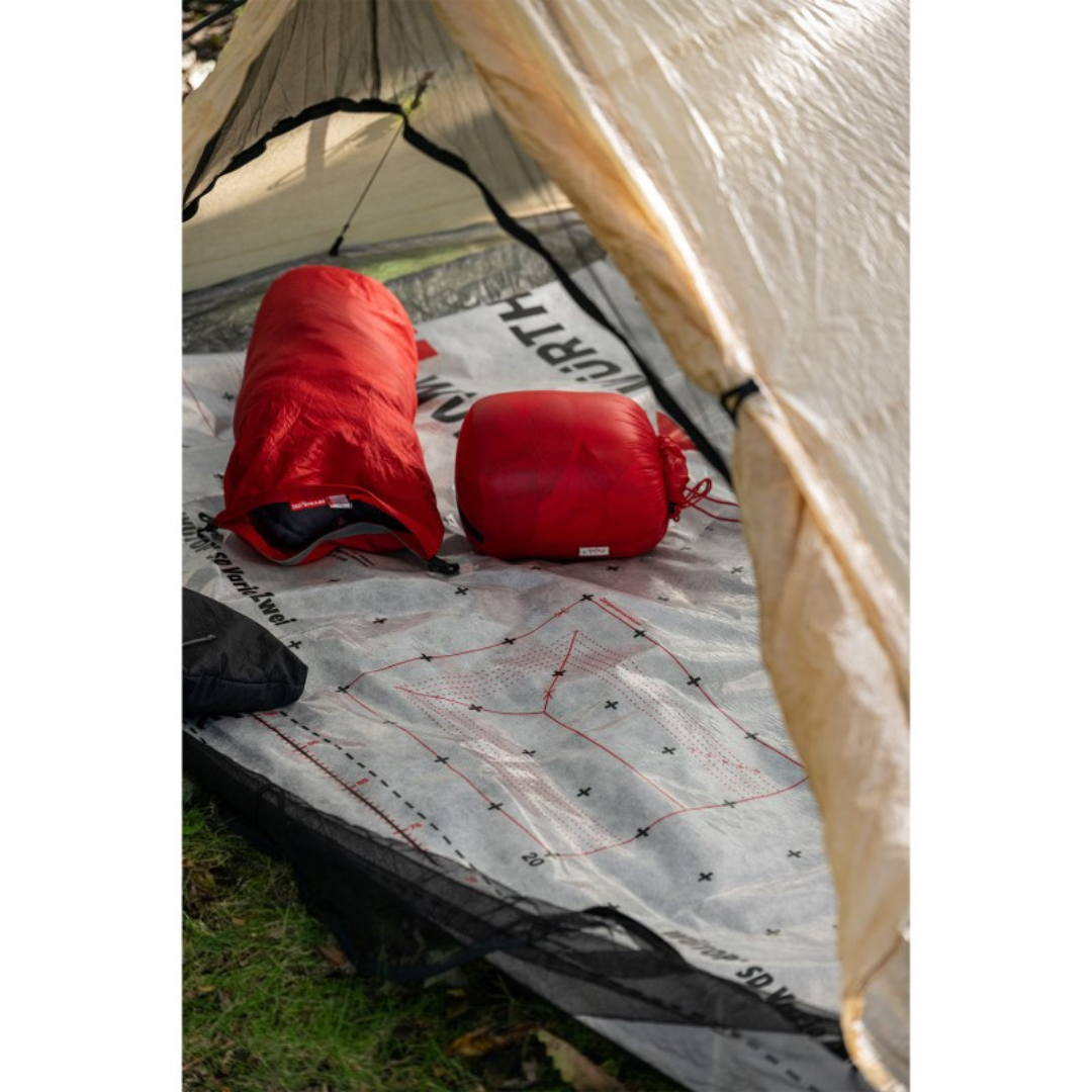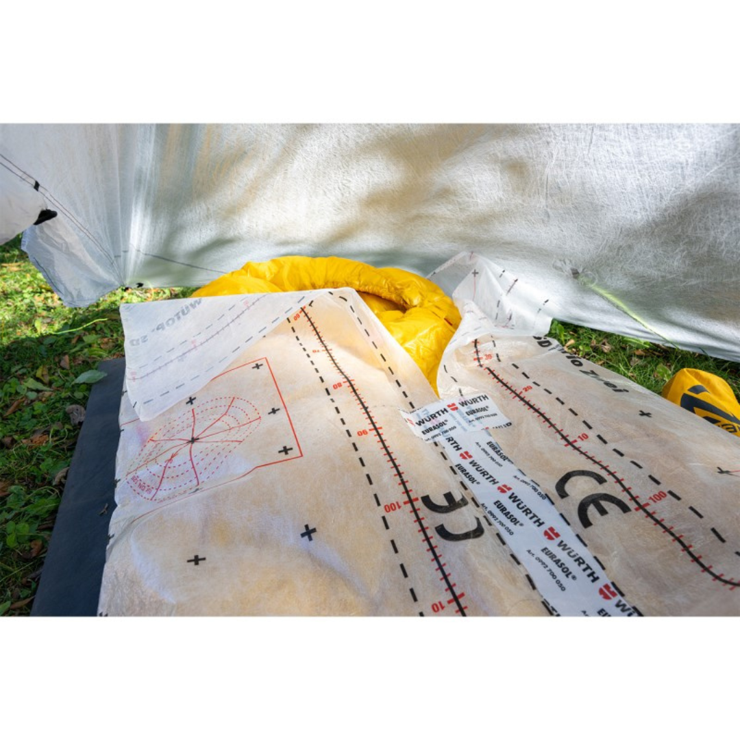 防水透湿性のグランドシート。タイベックと同じように本来は、建築資材として使用されています。その機能性の高さから、アウトドアでも使えるのでは?ということで、アウトドア業界にも入ってきました。タイベックより重ためですが、シャカシャカ音がしないので、早朝・夜間使用でも使いやすいです。