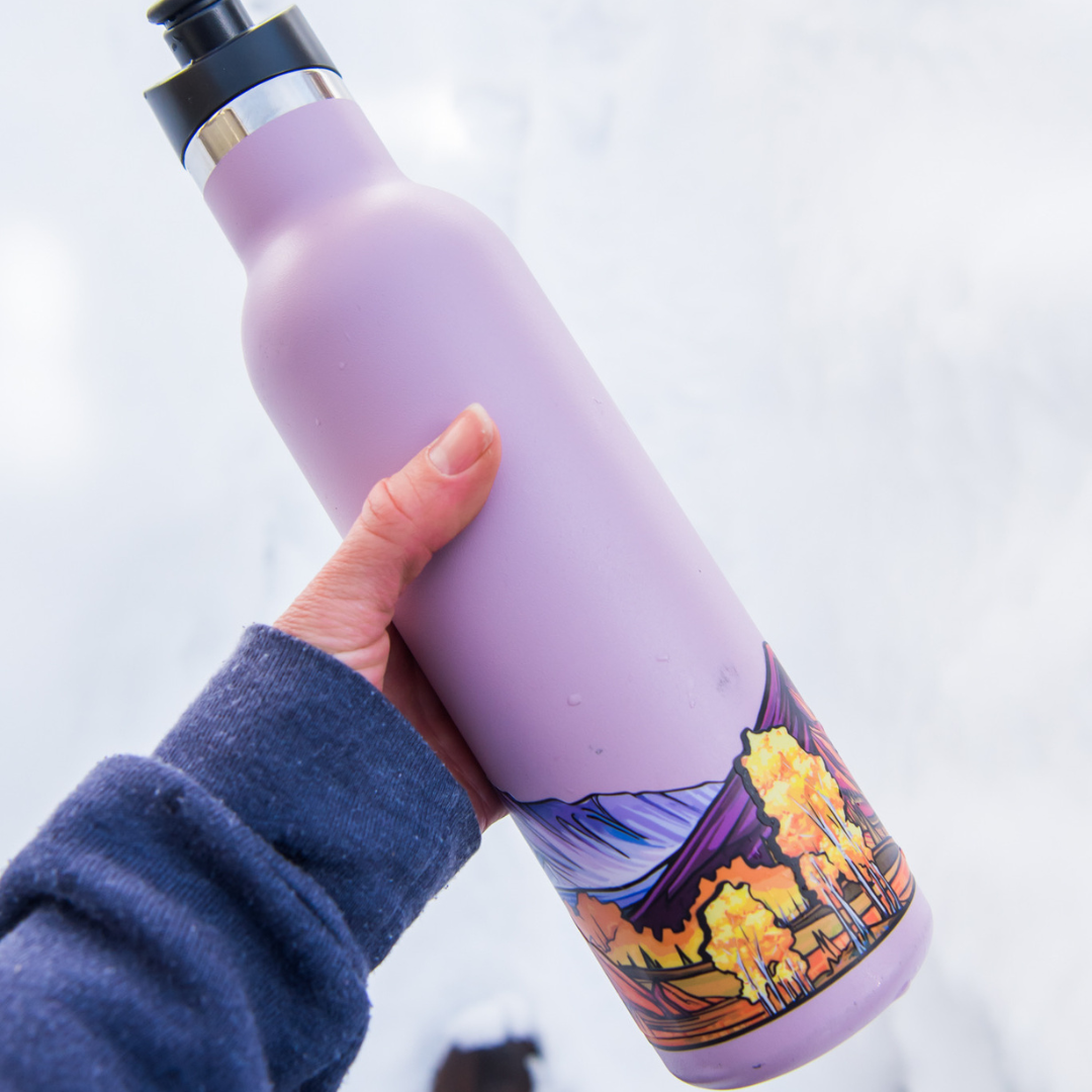 ハイドラスケープの創設者グレッチェンはコロラドで育ち、この山々で登山を学びました。このInfinity Sticker®は、コロラドのフラットロン、ロングスピーク、そして秋のロッキー山脈国立公園を描いています。