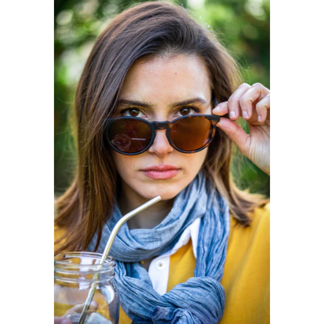 女性人気ナンバーワン。クラシカルな、べっ甲デザインの丸型レンズのサングラス。普段使いもとってもしやすいデザインです。