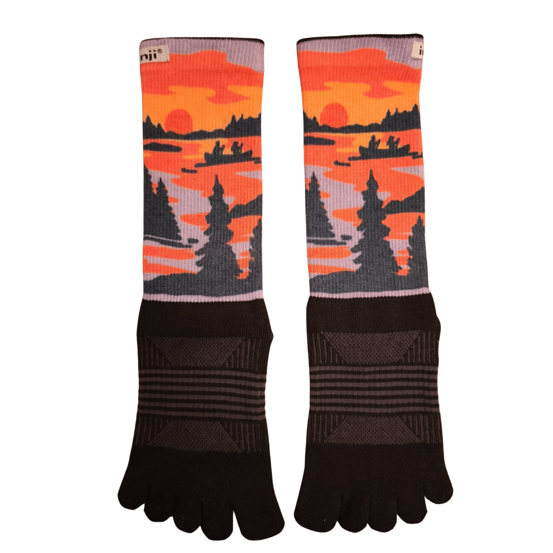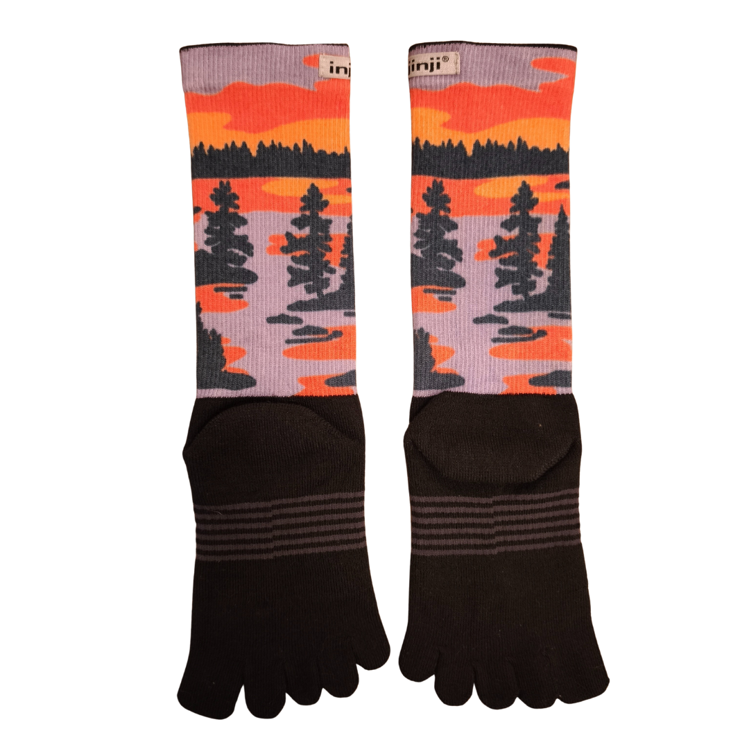 アウトドアなデザインのアーティストコラボ限定モデル!これまでのインジンジにない魅力的なデザインが大人気トレイルシリーズはトレイルランニングなど平坦な道だけではなく予測できない様々な道を走るのに最適なソックスです。