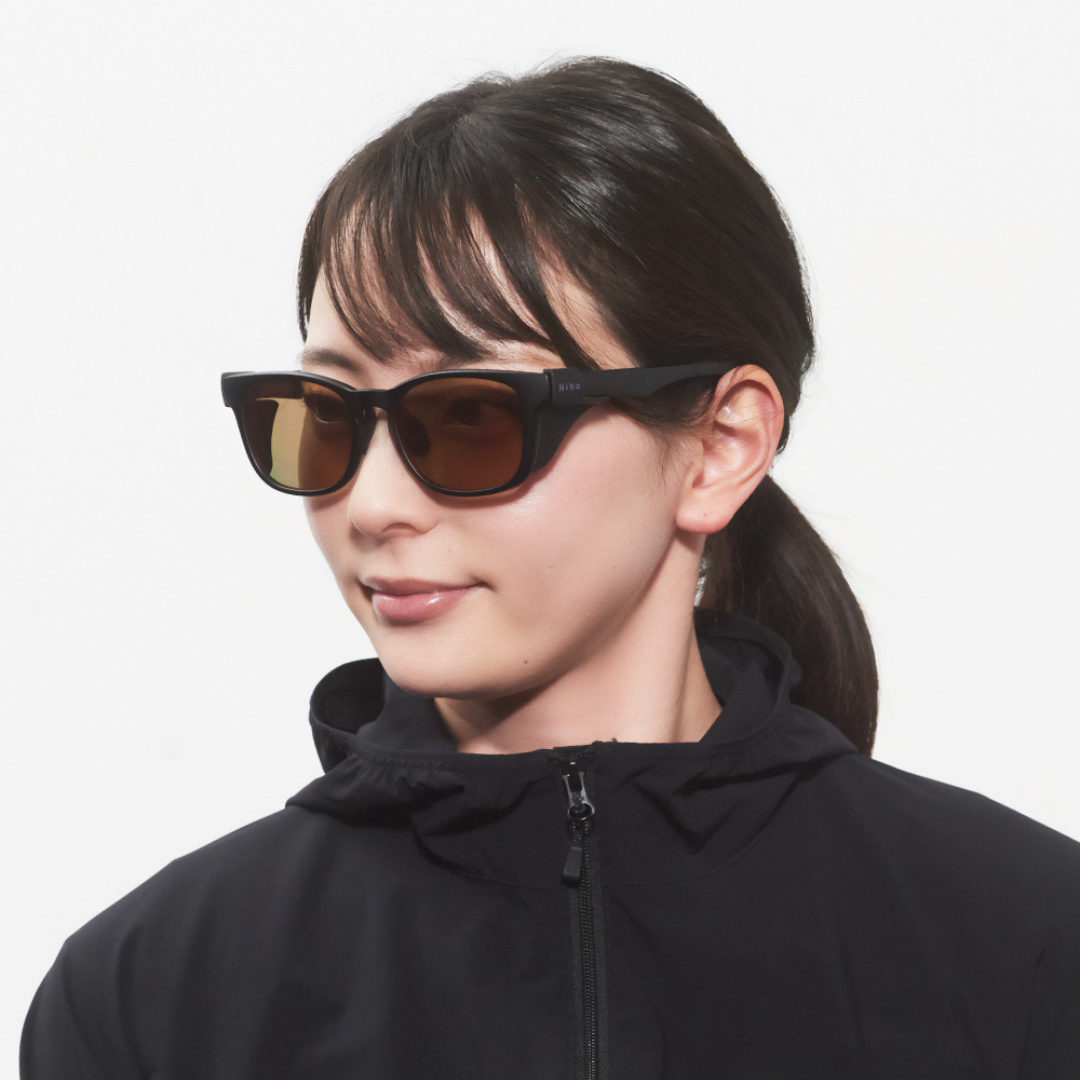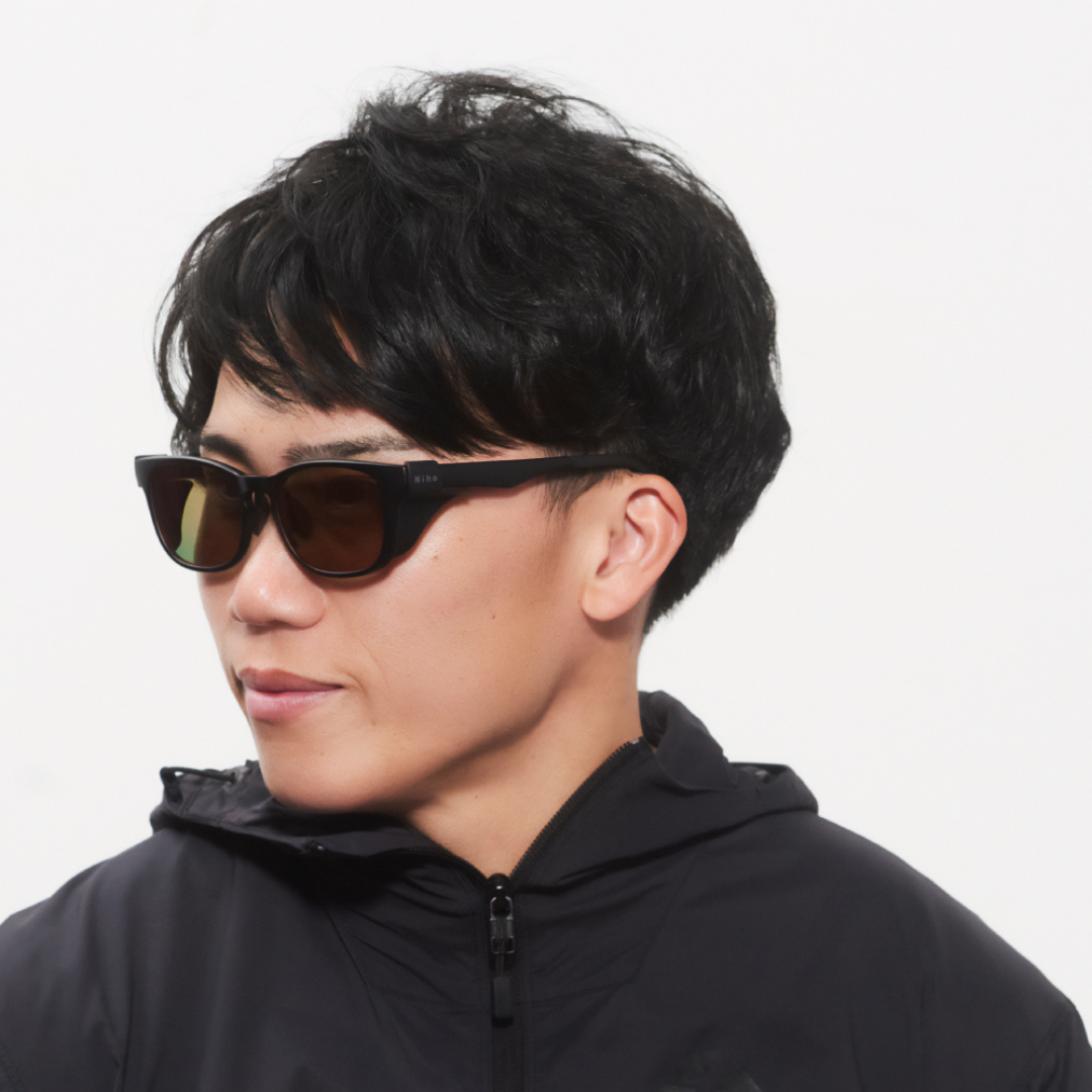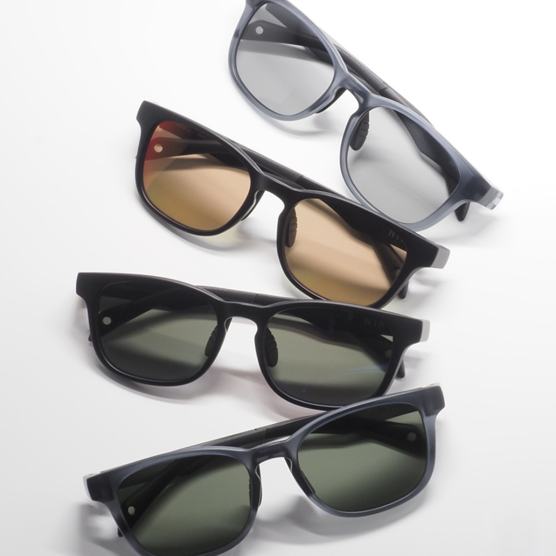 特徴的なのは、超軽量でフード付きというところ。それでいて普段使いもしやすいデザインのサングラスです。もちろんメガネ・サングラスの産地、福井県発のブランドNiho(ニホ)です。