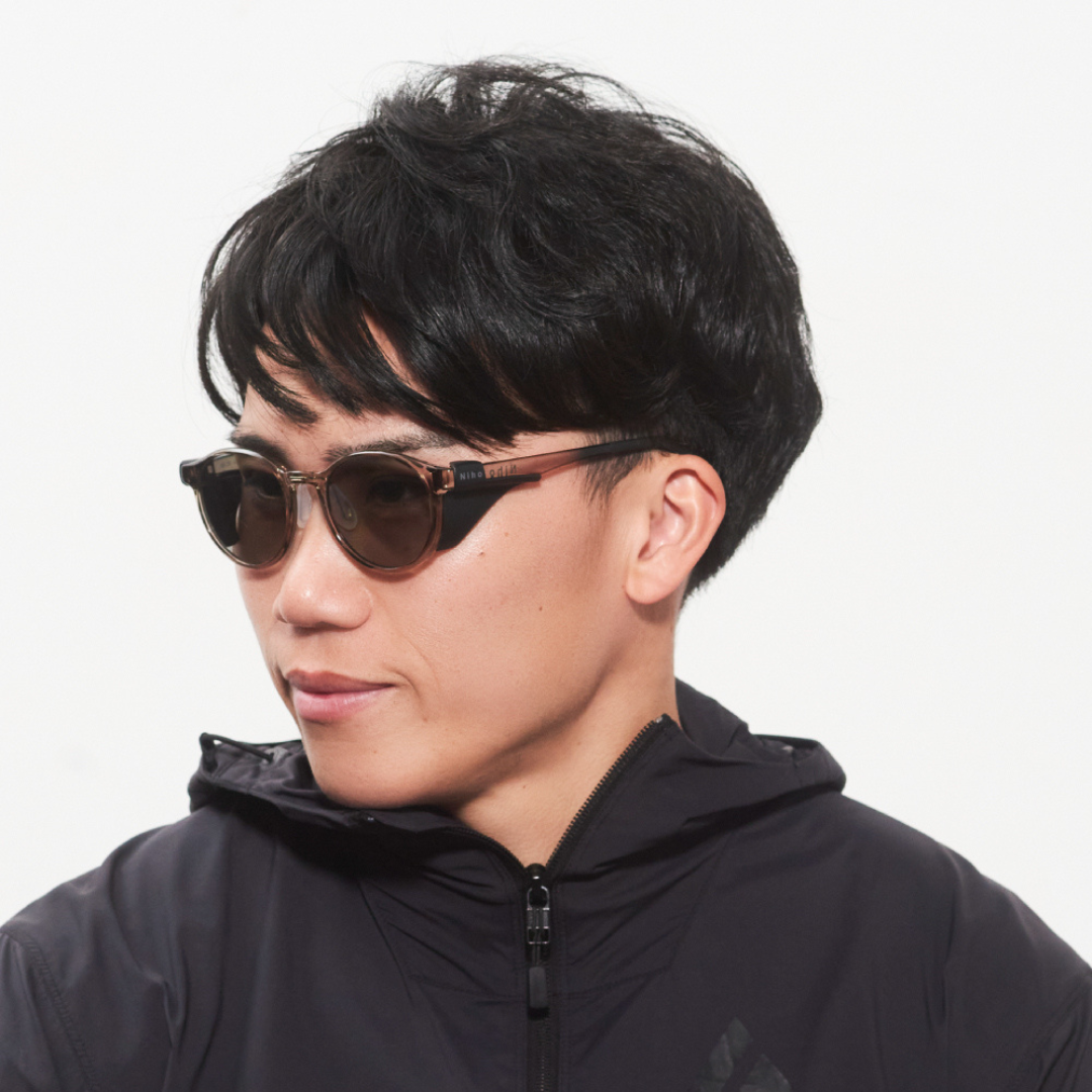 特徴的なのは、超軽量でフード付きというところ。それでいて普段使いもしやすいデザインのサングラスです。もちろんメガネ・サングラスの産地、福井県発のブランドNiho(ニホ)です。