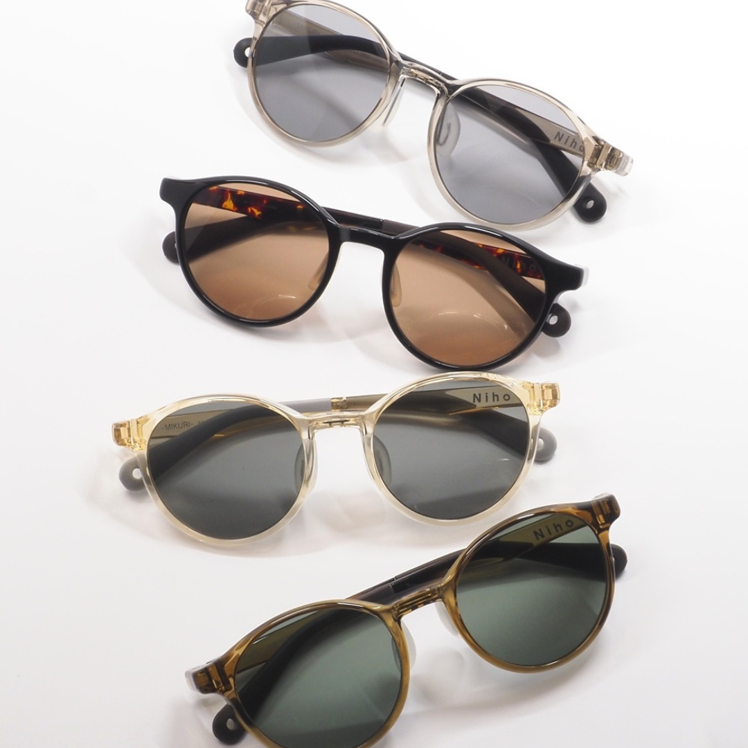 特徴的なのは、超軽量でフード付きというところ。それでいて普段使いもしやすいデザインのサングラスです。もちろんメガネ・サングラスの産地、福井県発のブランドNiho(ニホ)です。