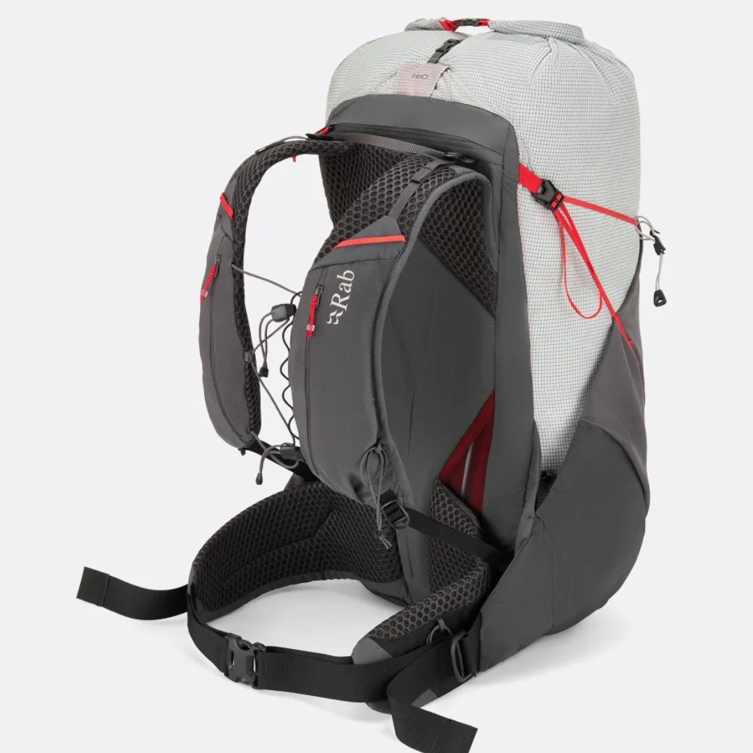 Rabからテント泊や小屋泊におすすめな軽量なバックパックが登場!2024年に登場し、とても話題になったバックパックです。40Lの容量でフレーム内臓でありながら、1Kgを切る895g!ベーシックな登山スタイルからウルトラライト(UL)に移行する方にドンピシャです!ULザックに慣れている方でしたら、その背負い心地に驚くと思いますし、1Kg超えのザックを使用している方でしたら、その軽さに感動すると思いますよ!