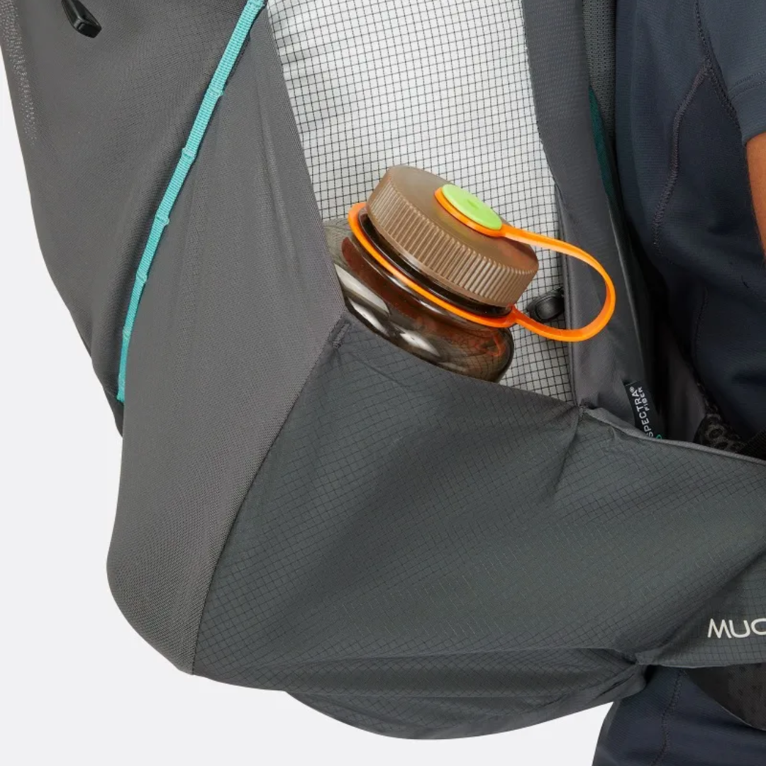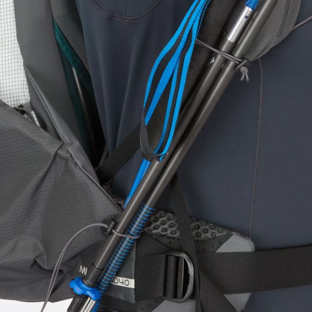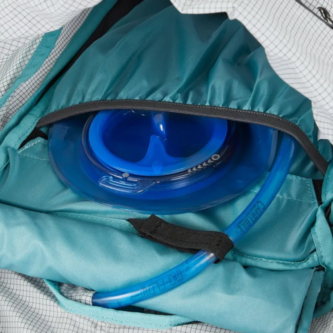 シンプルなロールトップで、素早く簡単にギアを取り出せますし、大型のフロント・メッシュポケットは余分なレイヤーを収納でき、サイドのメッシュポケットとハーネスポケットは水やスナックをすぐに取り出せます。内部には3Lのハイドレーションを収納するスペースもあり、両手を空けたいときはポールをパックの外側に固定することもできます。