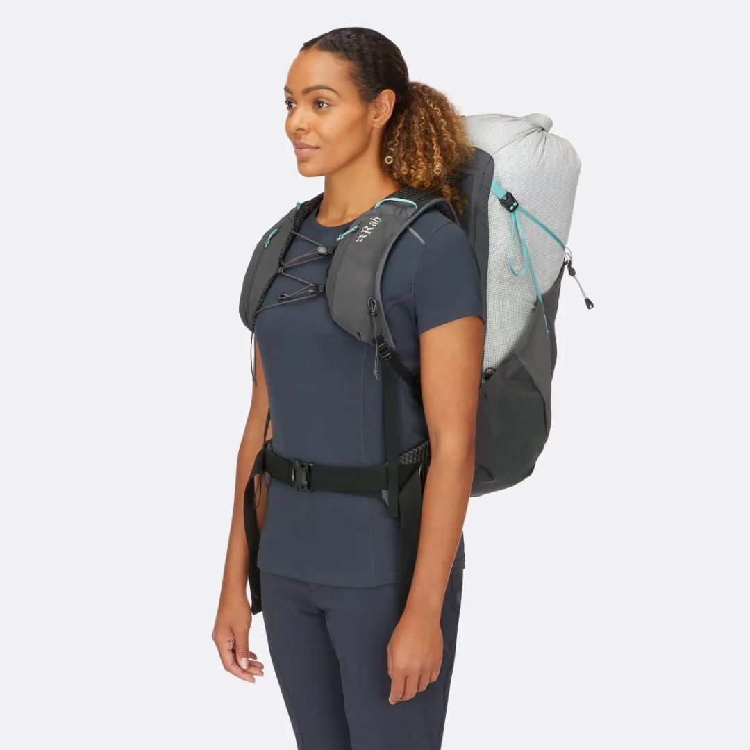 Muon 40の妹分。Rabからテント泊や小屋泊におすすめな軽量なバックパックが登場!2024年に登場し、とても話題になったバックパックです。40Lの容量でフレーム内臓でありながら、1Kgを切る895g!ベーシックな登山スタイルからウルトラライト(UL)に移行する方にドンピシャです!ULザックに慣れている方でしたら、その背負い心地に驚くと思いますし、1Kg超えのザックを使用している方でしたら、その軽さに感動すると思いますよ!
