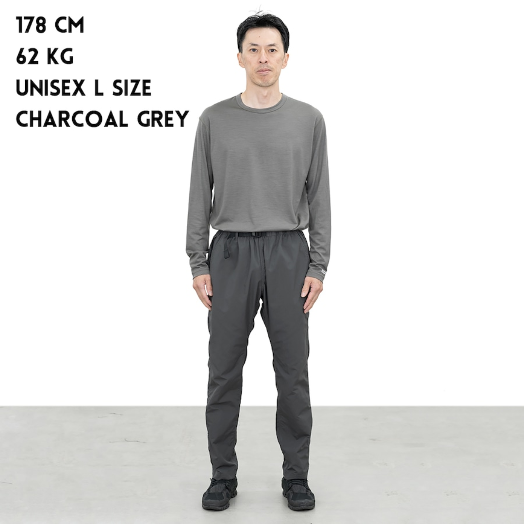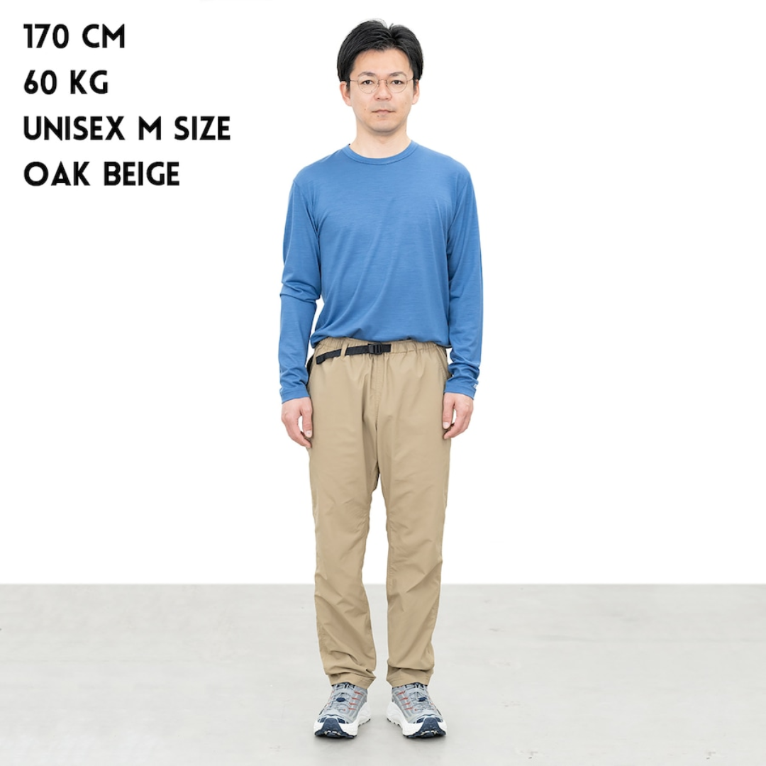 イメージは「トラウザース」の様なシルエットで、日常でもハイキングでも履けるパンツです。ウエストはゴム仕様でリラックスできるけれど、履いていてスッキリとしたシルエットに拘りました。このパンツは、カジュアルな場面でもアクティブな場面でも快適に過ごせるデザインとなっています。