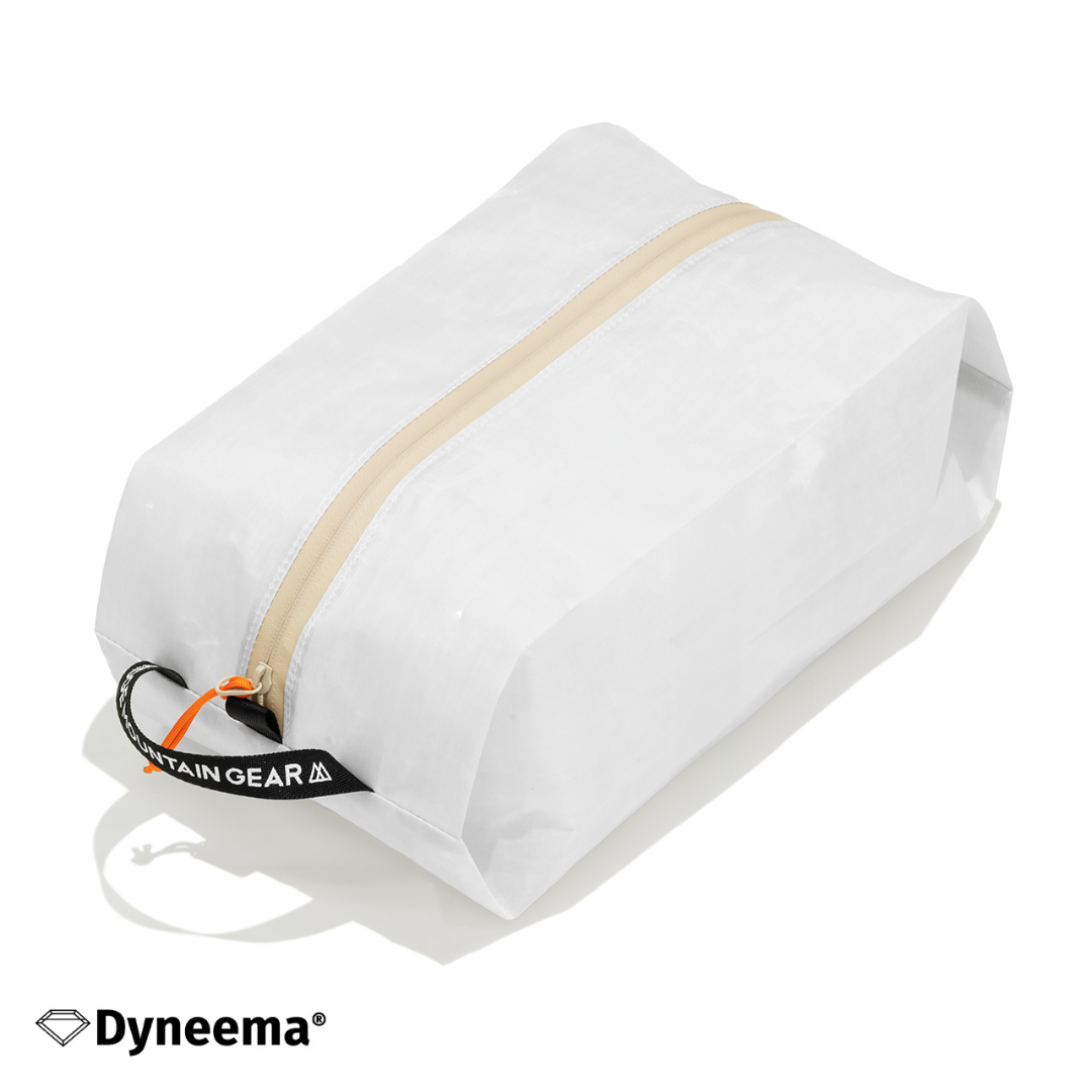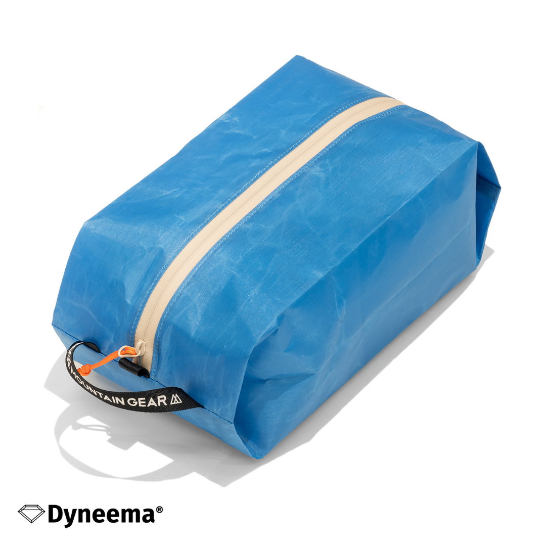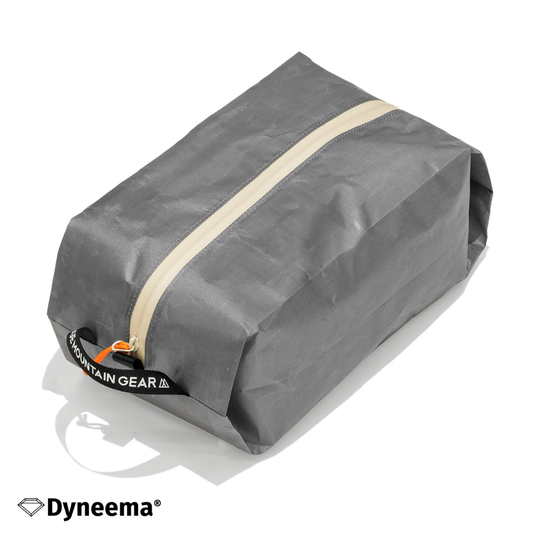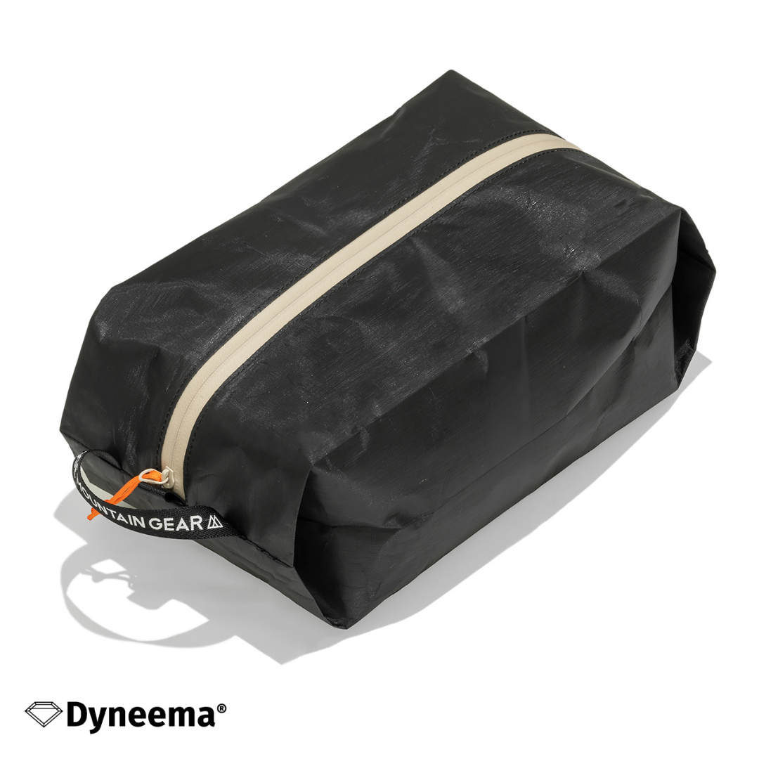 着替えや防寒着の整理にちょうどいい9LサイズのDCF製のポーチです。マチ付きなので荷物の量に応じて厚みが最適化されとってもスマート。またハンドルが付いているのがミソで、バックパックの奥から引っ張り出したり、持ち手にしたりと、ぶら下げたり、意外とポーチにハンドルなかったりするのでいいですよね!