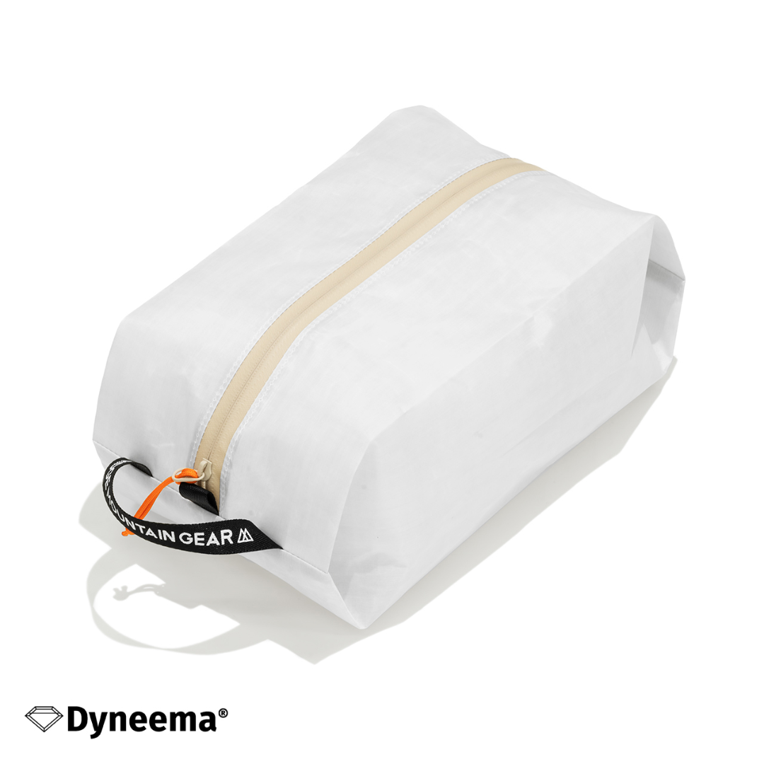 クッカーや小物の整理にちょうどいい5LサイズのDCF製のポーチです。マチ付きなので荷物の量に応じて厚みが最適化されとってもスマート。またハンドルが付いているのがミソで、バックパックの奥から引っ張り出したり、持ち手にしたりと、ぶら下げたり、意外とポーチにハンドルなかったりするのでいいですよね!