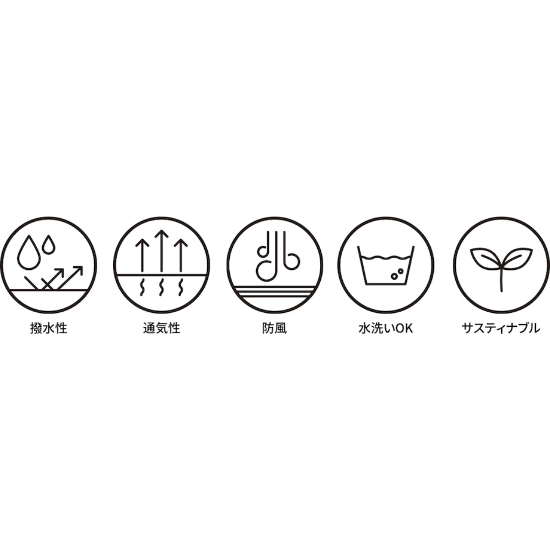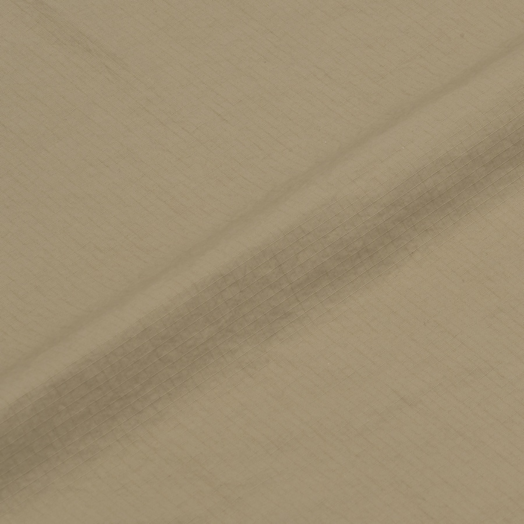 ナイロン特有のタフな強度はそのままに、ふわっと仕上がるタスラン糸によるコットンタッチとナイロンのソフトな風合いを兼ね備えた素材です。リップストップ組織の生地の表面には撥水加工が施されています。