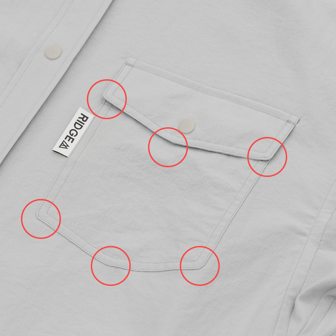 ボタンにはすべて、樹脂製のスナップボタン(YKK PLANCER®)を採用しました。この選択により、通常の縫い付けボタンにありがちな糸切れによるボタンの紛失といったトラブルを防ぎます。また、スナップボタンの構造上、開閉がスムーズで、頻繁な着脱にも対応しやすいのが特徴です。