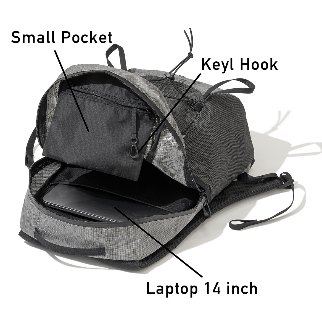 本体生地を耐久性と軽量性を兼ね備えたUltraWeave™ Ultra100X素材に変更しました。ポケットデザインを再構築することで、全体のバランスを一層スッキリと整えました。必要なものをコンパクトに持ち運びながら、気軽に使える心地よさ。
