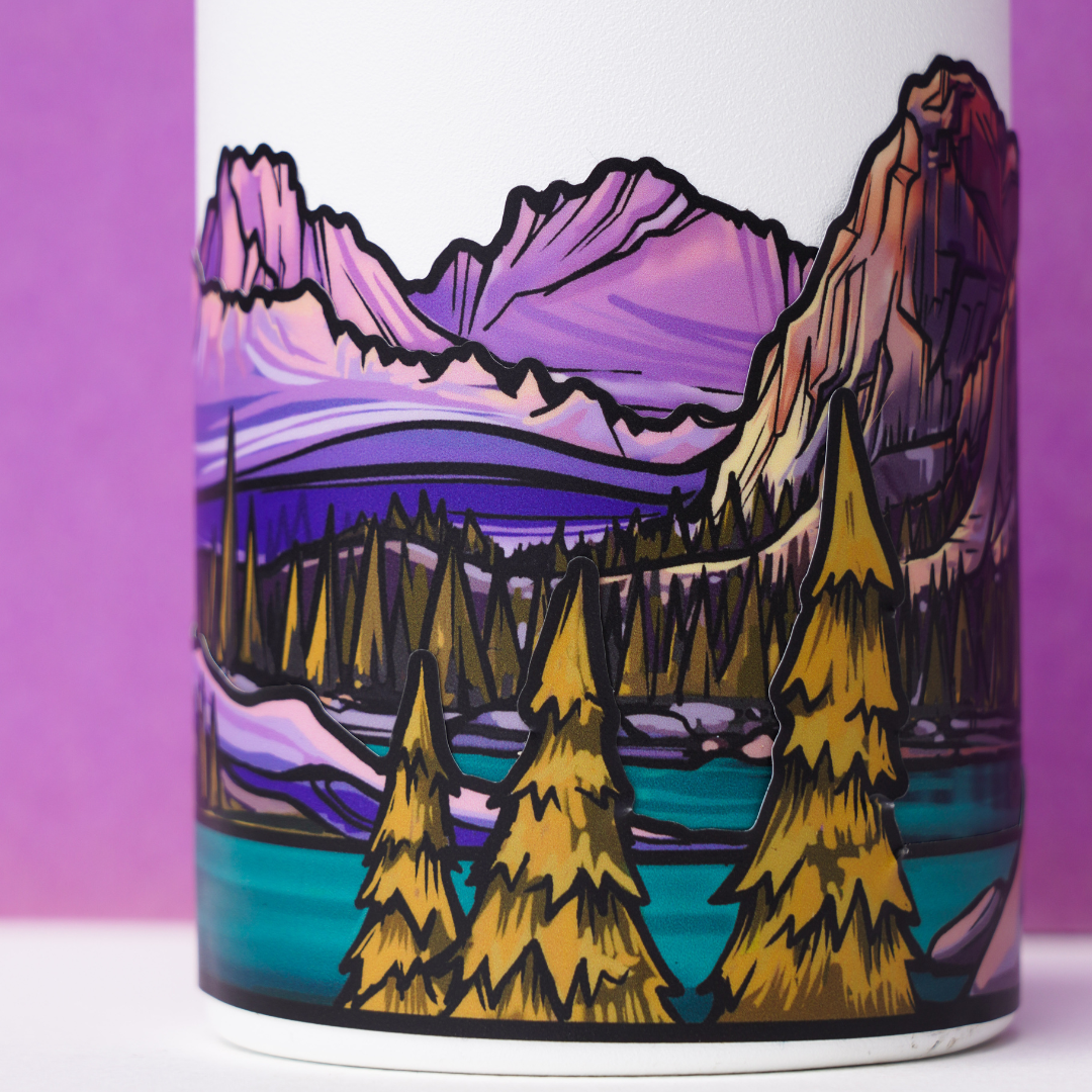 このインフィニティ・ステッカーには、アイダホのソートゥースとエレファント・パーチが描かれています。熱心なクライマーである創始者のグレッチェンは、それぞれのピークをユニークなものにしている険しいスカイラインや岩の複雑な稜線をとらえたデザインを作るのが大好きです。