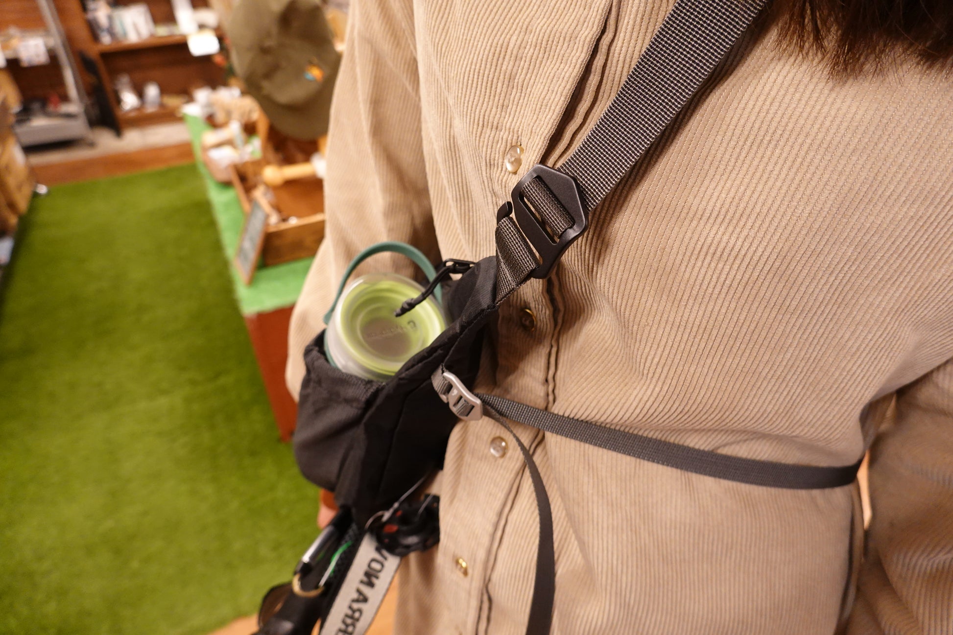 普段からマイボトルを持ち歩くので、ボトルが収納できるサコッシュが欲しかったんです。かといってショルダーバックほど大きくないやつ。というわがままな欲求を満たしくれました。さらに、ウエストストラップベルト付きなので、自転車などバッグが揺れて不快な時腰に巻き付けると安定します。使わない時は、短くしてギアを引っ掛けてます。