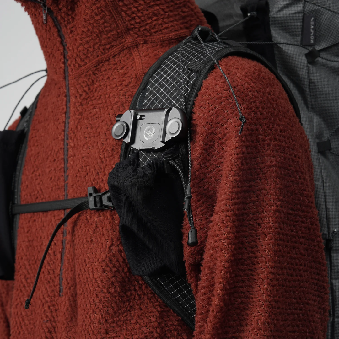 UNUS52のフレームシステムは、軽量性、耐久性、調整可能性を兼ね備えています。骨組みにはトラックアルミ合金中空チューブを使用し、カーボンファイバーステーで補強されています。ショルダーストラップは、取り外し可能なカーボンファイバーステーをずらすことで水平方向に位置を調整でき、体格に合わせられるので、長時間のトレッキングでも快適なフィット感が得られます。
