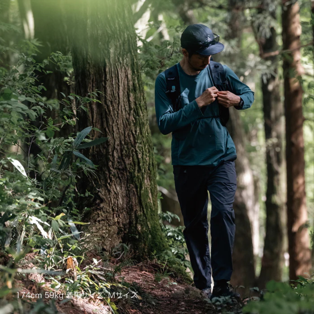 何度もサンプルアップとテストを繰り返し完成したDrifter LT Pantsはヒップや太もも周りは窮屈感の無いリラックスフィットかつ、裾周りはダブつきが少なく足捌きもし易いシルエットに仕上げました。