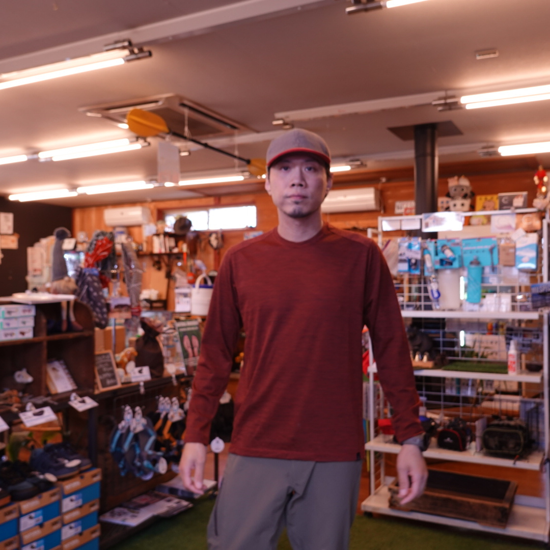 肌面にポリエステル、外側にメリノウールを使い分けることで1着で2種のウエアを着ているかの様。肌面にはポリエステルが触れるので、着心地はAll ELEVATIONか。と思いつつも十分気持ちのいい着心地で。これ肌に触れてるの本当にポリエステル?という感じ。汗を多くあくアクティビティにおすすめなユニセックスのベースレイヤーです。