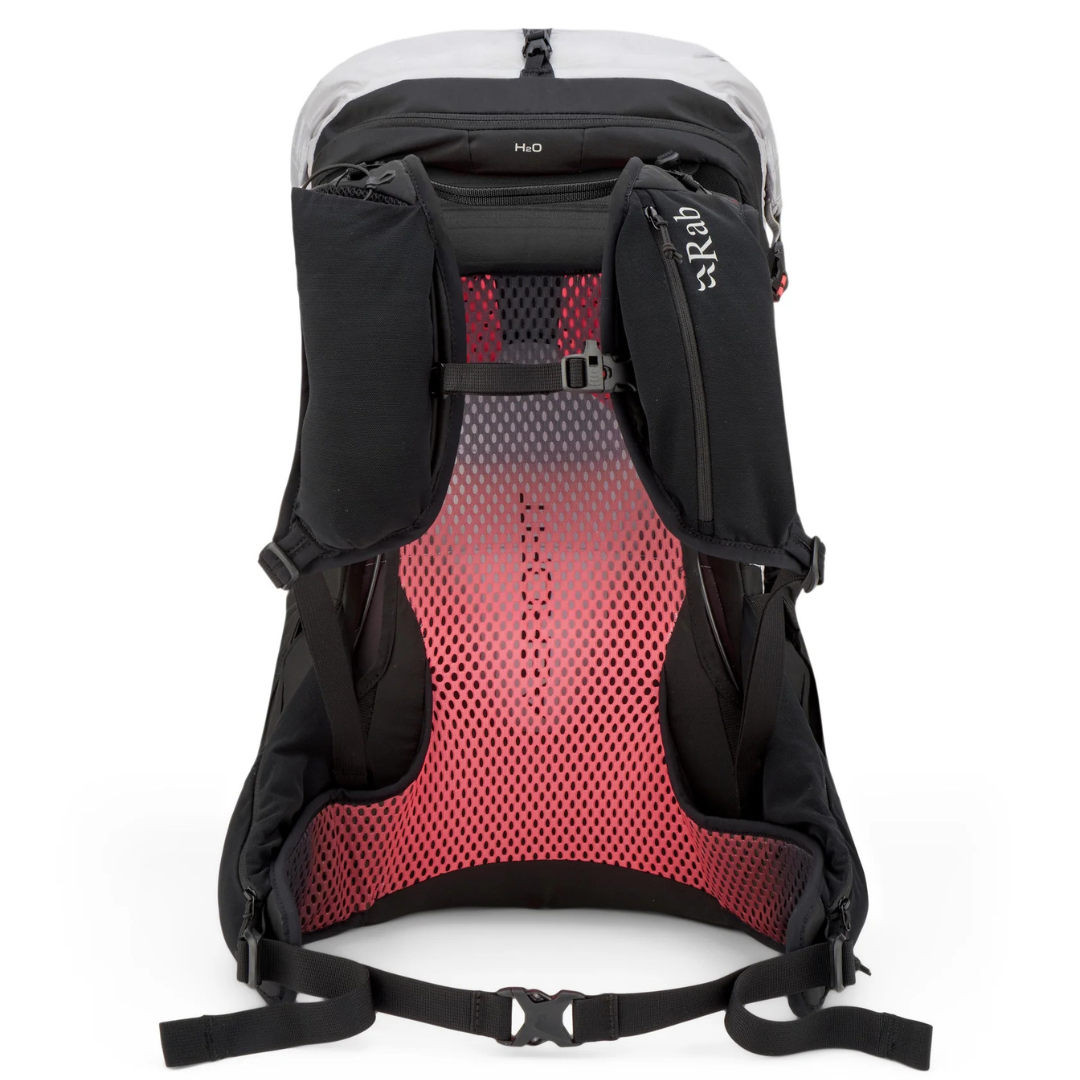 - ジッパー付きリアコンパートメントは、ウォーターブラダーの収納や、濡れたシェルを乾いた装備と分離して保管するのに最適。