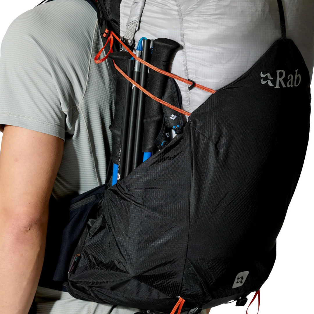 - ハンズフリーが必要な時は、アタッチメントポイントを使用してウォーキングポールをパックに固定。