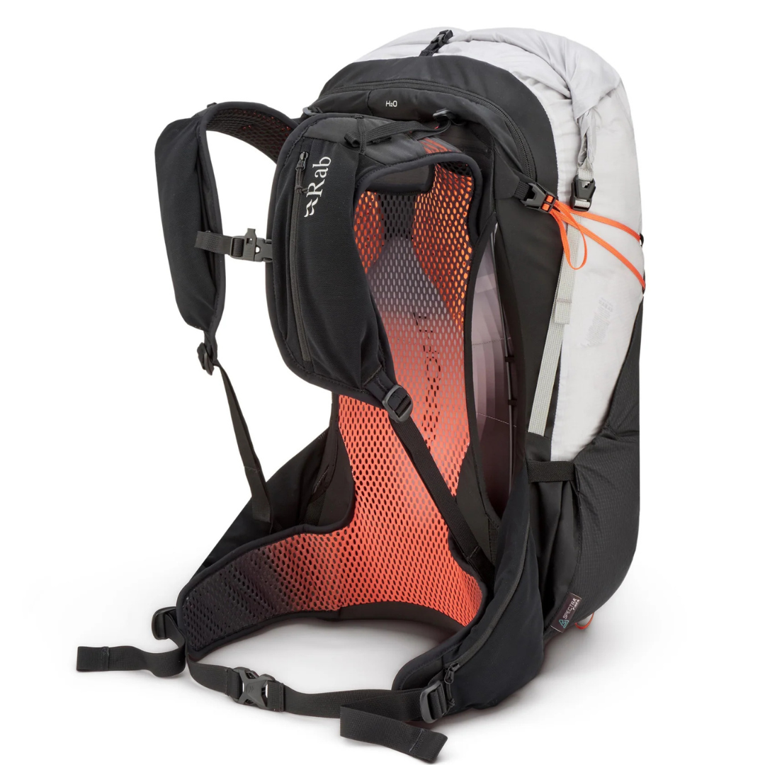 これによりドライバッグやレインカバーが不要となり、さらなる軽量化を達成しています。AEROFIT™キャリーシステムは身体の輪郭に沿い通気性に優れ、背中に十分な空気の流れを確保。