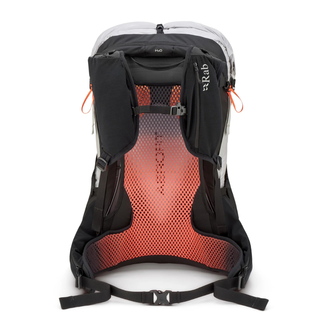 - ジッパー付きリアコンパートメントは、ウォーターブラダーの収納や、濡れたシェルを乾いた装備と分離して保管するのに最適。